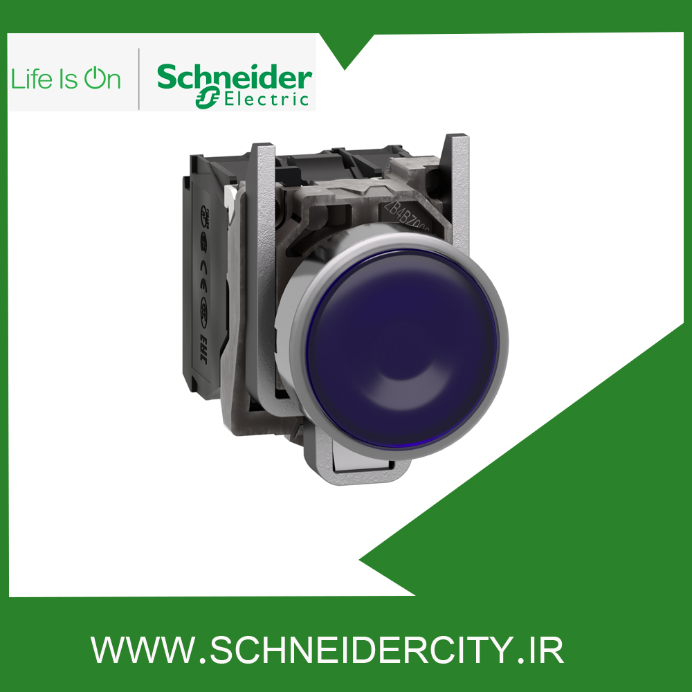 خانه شاسی سری XB4 پوش باتن فلزی آبی 24ولت ACوDC اشنایدرXB4BW36B5