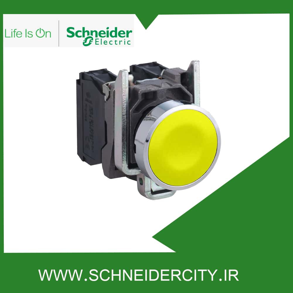 خانه شاسی سری XB4 پوش باتن فلزی زرد 1NO اشنایدرXB4BA51