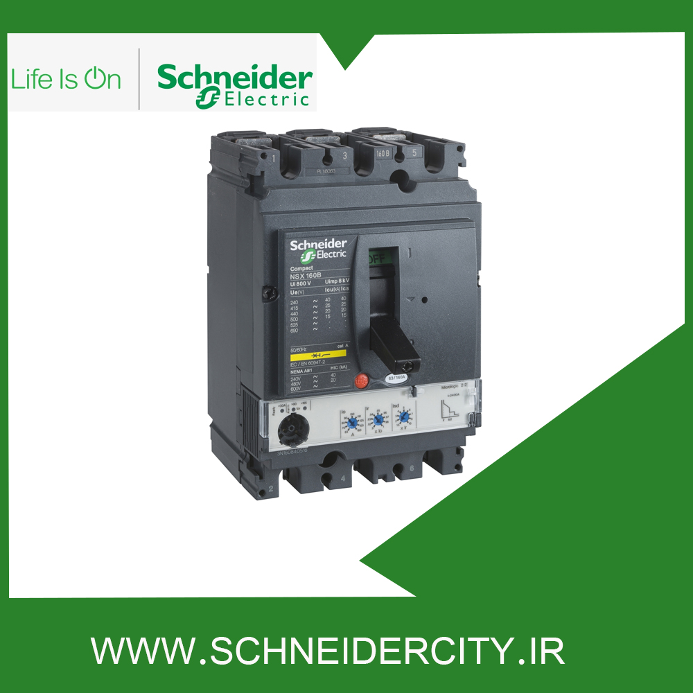 خانه کلید اتوماتیک اشنایدر کلید اتوماتیک قابل تنظیم 3پل کليداتوماتیک160آمپر اشنایدرسه پلLV430775