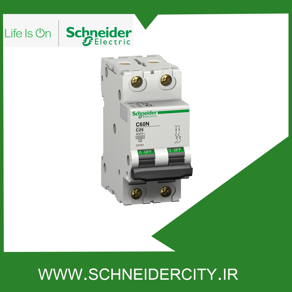 کلید مينياتوری دو پل 10 آمپر اشنایدر 24336