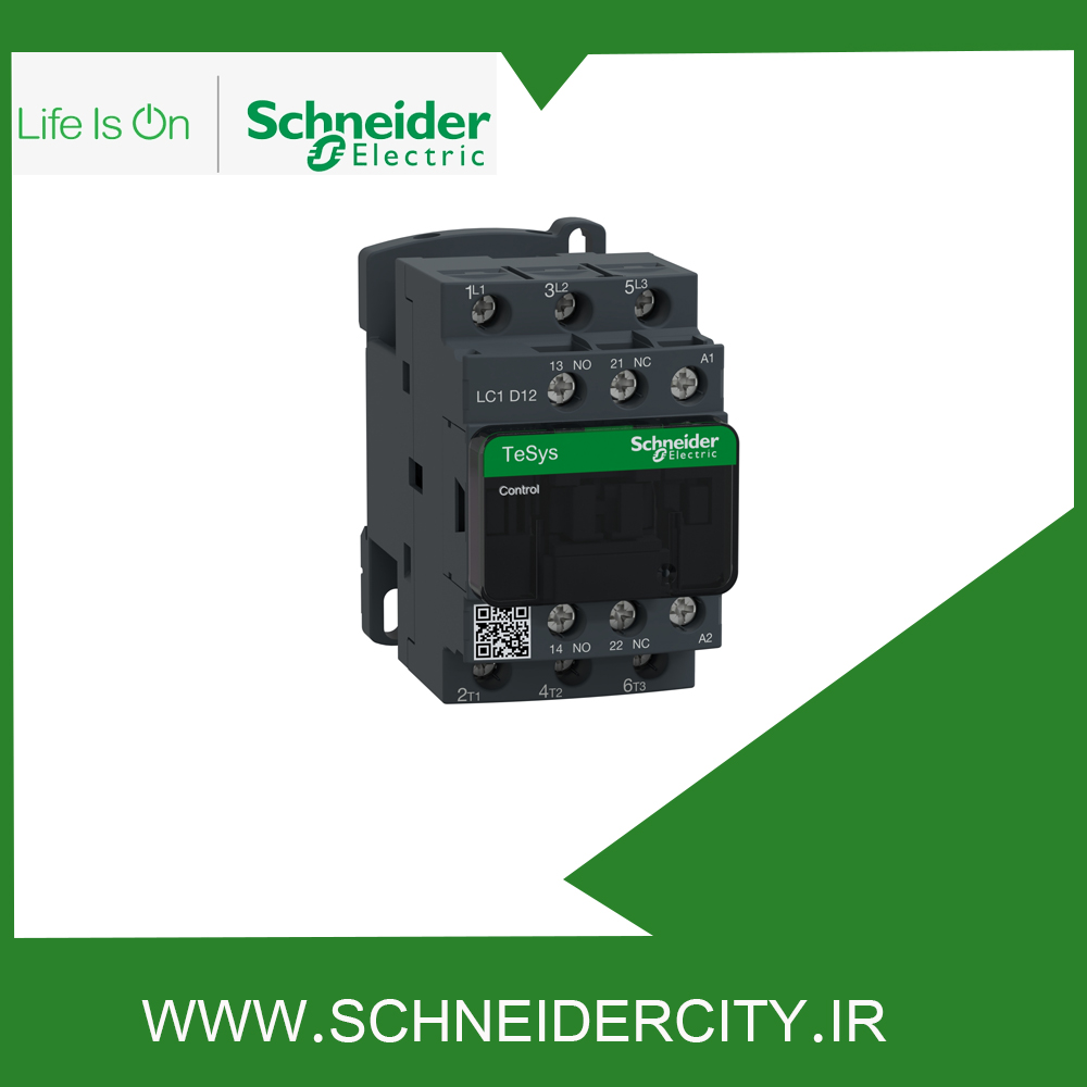 کنتاکتور 12 آمپر LC1D12M7 اشنایدر به منظور کنترل بار عمومی و موتور مورد استفاده قرار می گیرد. این کنتاکتور از نوع سه پل بوده و سه کنتاکت با قدرت NO دارد که ترکیب آن ها به صورت 1NO + 1NC است. جریان کاری این قطعه 12 آمپر و ولتاژ تغذیه بوبین یا ولتاژ کنترلی آن ۲۲۰ ولت AC است.