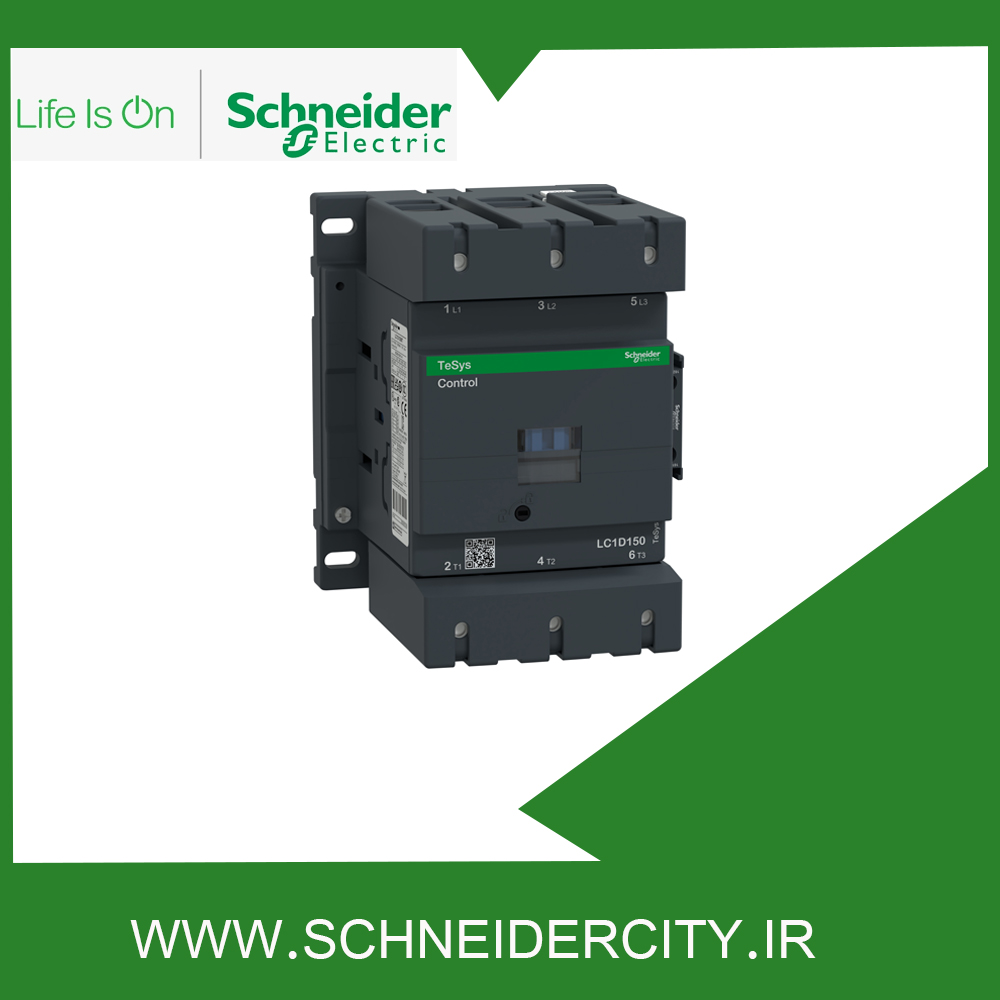 کنتاکتور 150 آمپر LC1D150M7 اشنایدر به منظور کنترل بار عمومی و موتور مورد استفاده قرار می گیرد. این کنتاکتور از نوع سه پل بوده و سه کنتاکت با قدرت NO دارد که ترکیب آن ها به صورت 1NO + 1NC است. جریان کاری این قطعه 150 آمپر و ولتاژ تغذیه بوبین یا ولتاژ کنترلی آن ۲۲۰ ولت AC است.