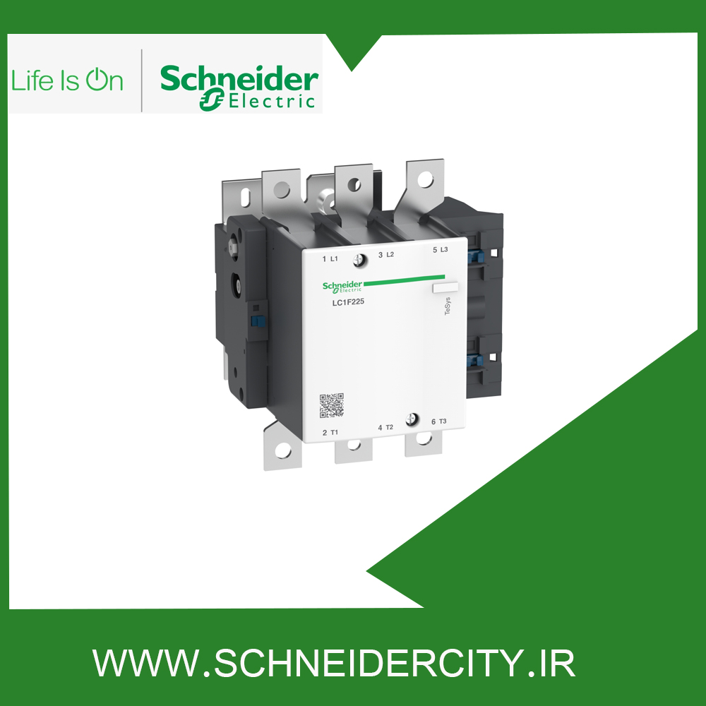 کنتاکتور 225 آمپر سری F برند اشنایدر دستگاهی کاربردی برای کنترل موتور است. این کنتاکتور به صورت سه پل و سه کنتاکت NO به تولید می‌ رسد. با توان 110 کیلووات در 400 ولت و تا جریان 330 آمپر با ولتاژ کاری 1000 ولت کار می ‌کند. در ساختار این محصول یک بوبین به کار رفته که با ولتاژ 220 ولت ac در شبکه 400_40 هرتز کار می ‌کند.