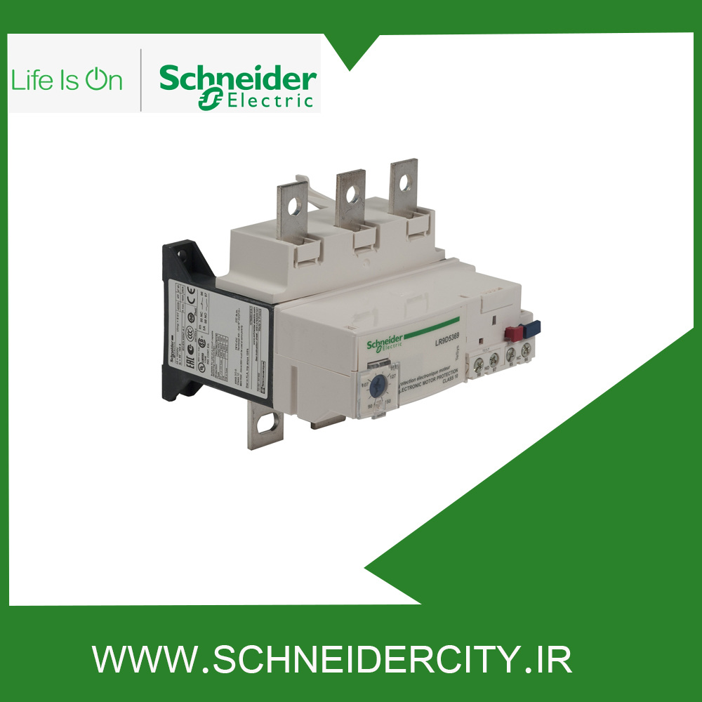 LR9D5369 اشنایدر در محدوده تنظیم جریان حرارتی 90 تا 150 آمپر از موتورهای ۳۷ تا ۴۵ کیلووات ۴۰۰ ولت محافظت می‌ کند. این وسیله به طور مستقیم زیر کنتاکتورهای سه پل نصب می ‌شود و موتورهای سه فاز و تک فاز را در برابر اضافه بار حرارتی به خوبی حفظ می ‌کند.