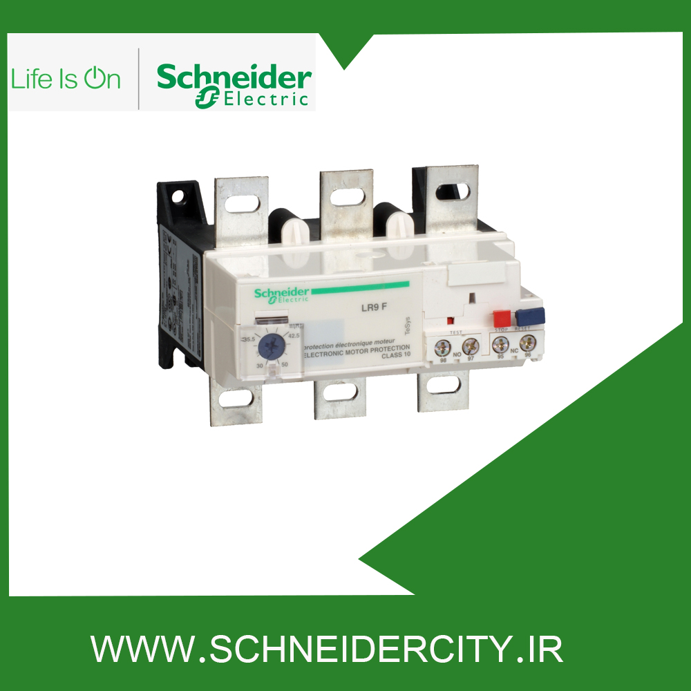 LR9F5367 اشنایدر در محدوده تنظیم جریان حرارتی ۶۰ تا ۱۰ آمپر از موتورهای ۳۷ تا ۴۵ کیلووات ۴۰۰ ولت محافظت می کند. این وسیله به طور مستقیم زیر کنتاکتورهای سه پل نصب می شود و موتورهای سه فاز و تک فاز را در برابر اضافه بار حرارتی به خوبی حفظ می کند.
