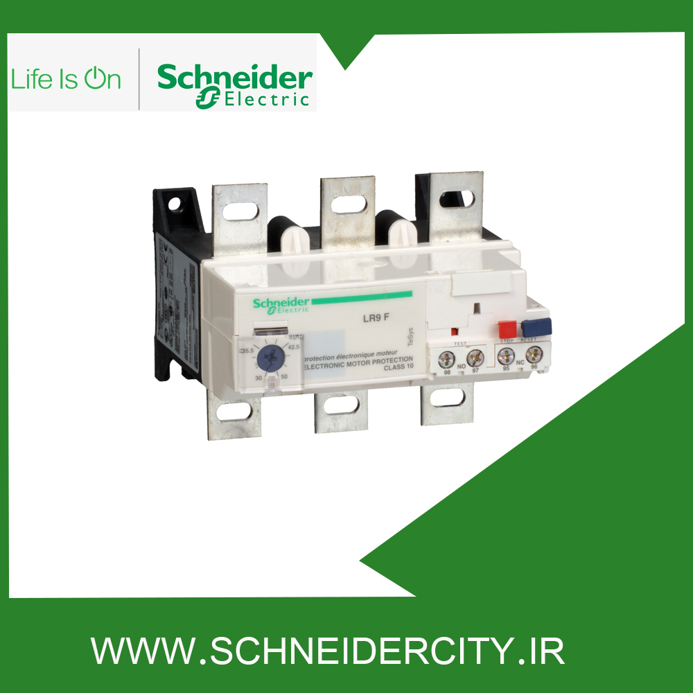 LR9F5369 اشنایدر در محدوده تنظیم جریان حرارتی 90 تا 150 آمپر از موتورهای ۳۷ تا ۴۵ کیلووات ۴۰۰ ولت محافظت می کند. این وسیله به طور مستقیم زیر کنتاکتورهای سه پل نصب می شود و موتورهای سه فاز و تک فاز را در برابر اضافه بار حرارتی به خوبی حفظ می کند.