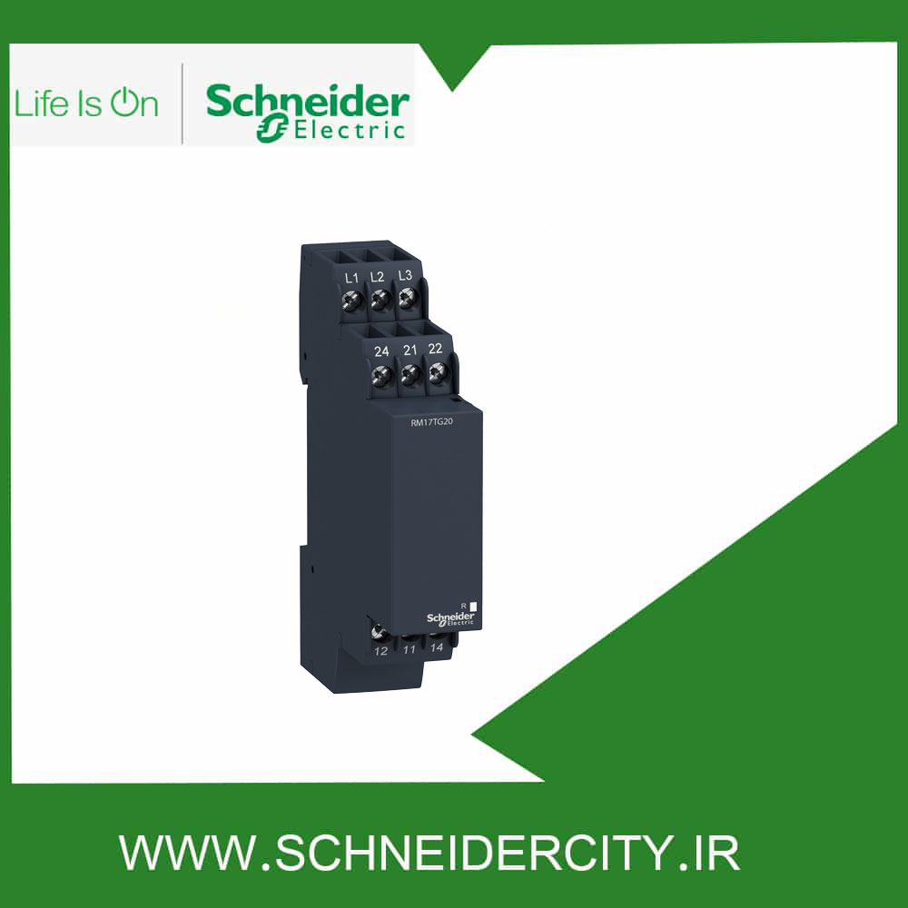 RM17TG20 اشنایدر قادر است تغییر توالی فازها را در مدارهای الکتریکی تشخیص دهد. قطع بودن یک یا دو فاز را تشخیص داده و به محض قطع شدن یک فاز، مدار فرمان را قطع کند. تشخیص کاهش و افزایش ولتاژ و اعلام آن به واسطه نشانگر و همچنین حساسیت در برابر عدم تقارن ولتاژ سه فاز، از دیگر ویژگی‌ های این رله کنترل محسوب می شود.